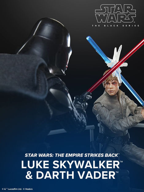 STAR WARS: THE BLACK SERIES includes 6-inch action figures, vehicles, and roleplay items from the 40-plus-year legacy of the STAR WARS Galaxy, letting fans create galactic scenes with a faithfulness to STAR WARS comic books, movies, series, and more. This Hasbro STAR WARS action figure 2-pack is detailed to look like Darth Vader & Luke Skywalker from STAR WARS: THE EMPIRE STRIKES BACK. Recreate the moment where Darth Vader reveals a frightening truth to Luke in Episode V with the included stand, featuring a base and railings modeled after the iconic scene in Cloud City. In addition to their signature Lightsabers™, the figures come with a clash effect and a blaster accessory. Look for more STAR WARS collectibles to recreate scenes from the franchise on your shelf (each sold separately, subject to availability).