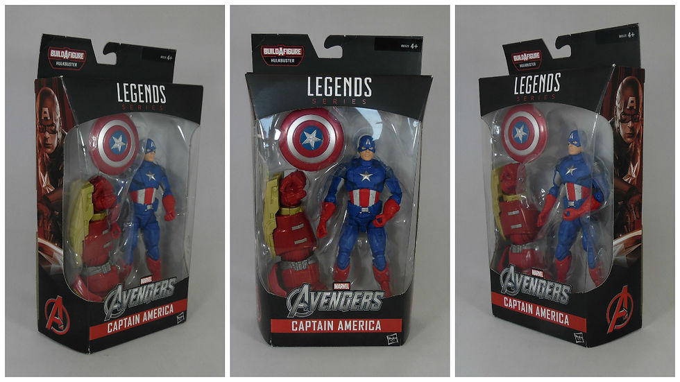 The packaging, just uses the generic Avengers logo and therefore avoids the confusion of an Avengers Assemble Cap packed with an Age of Ultron Hulkbuster arm. The rear of the packaging shows a blown up image of the figure and shield above a checklist of the other figures in this best of MCU lie - Iron-Man (Mk43), Hulk, War Machine (Mk2), Black Widow, Hawkeye, Loki and Thor. Thor did not come with a BAF piece.