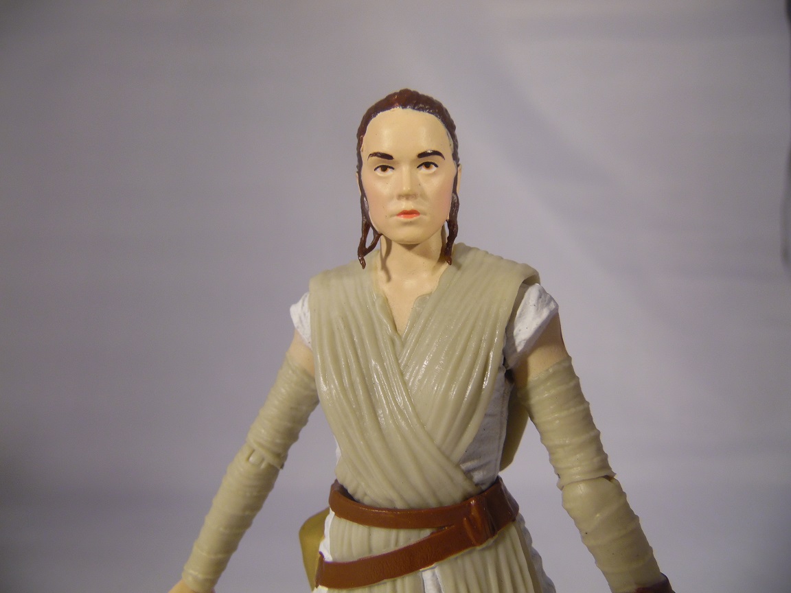 Rey herself is very well sculpted, although the head perhaps feels a little featureless - a common issue in sculpting younger female faces in particular. Her hair sits in a very (dare I say Leia-esque) complex style with trailing pieces and tie backs which leave her with 3 pony tails. The outfit is relatively simple, but again captures the look of the original trilogy when you compare it to what Luke wore on Tatooine in the 1977 original.