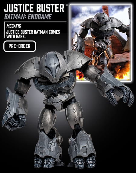 During the events of Endgame, The Joker infected Gotham City with a virus that turned the populace against Batman. The Justice League was among those infected. With codename "Fenrir", Batman activated the Justice Buster to neutralize each member of the Justice League. The Justice Buster is designed for war with the most powerful heroes on the planet.