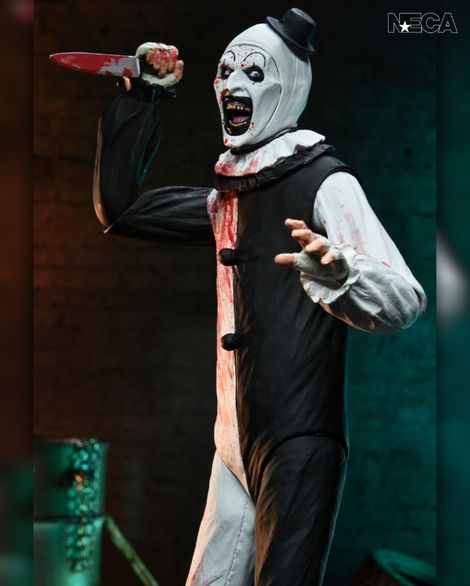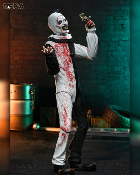 From Damien Leone’s Terrifier 2, NECA brings you this Ultimate Art the Clown action figure—a terrifying tribute to a modern horror icon. Standing in 7-inch scale, this fully articulated killer clown features blood-splattered deco, dripping in his victims’ blood from his little hat to his clown shoes. This figure includes multiple interchangeable faceplates and hands, and a slew of bloody weapons to add to the collection. The sadistic slasher comes in collector-friendly window box packaging with opening front flap, featuring artwork by www.creepyduckdesign.com. Bring home this silent, deadly menace to stalk your shelves!