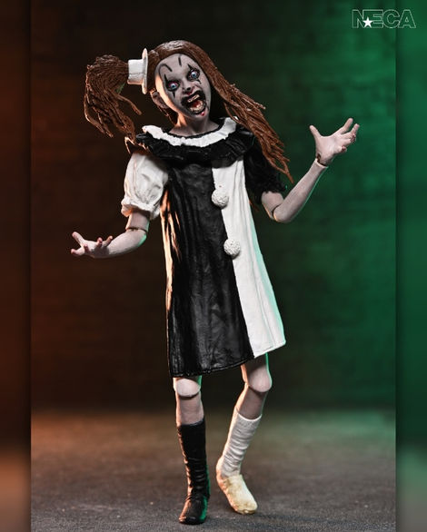 From Damien Leone’s Terrifier 2, NECA brings you this terrifying 2-pack of Art the Clown and his sadistic companion, The Little Pale Girl. Both figures are in 7-inch scale and in their classic black-and-white clown outfits. They feature several interchangeable faceplates and hands, and an arsenal of weapons and accessories. This dynamic duo is the perfect horror set, and whether all in Art’s head or not, The Little Pale Girl is a key character to the now infamous film series. This 2-pack features several exclusive accessories including a Tommy gun, sunglasses, a heart in a box, flamethrower, cereal box, bicycle horn, lollipop, and much more. Comes in collector-friendly window box packaging. Add this 2-pack of Art the Clown and The Little Pale Girl from Terrifier 2 to your shelves now!