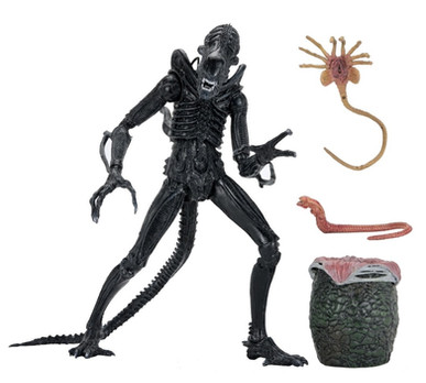 Like the previous releases, the figure stands 9 inches tall and has full articulation, including the hinged jaw and inner secondary jaw, and the wired tail. The set will come with the Aliens Egg accessory, chestburster, and a facehugger.