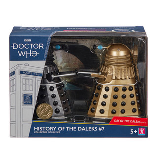 The Dalek sets use the existing classic Dalek mold and will move into the 2nd Doctor era Daleks with The Power of the Daleks. The 2-pack will feature a standard drone and a drone with the mutant scoop arm.