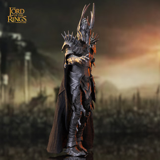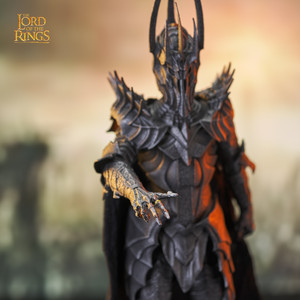The 13-inch tall Sauron (as big as the recent Marvel Surtur figure) features a full armoured body, a gauntlet hand wearing the one ring and a soft goods cape. Sadly, it seems from these images he is missing his mace.