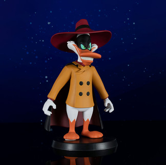 When there's trouble, you call DW! The Marauding Mallard swoops into action figure form courtesy of DST, along with his evil opposite, Negaduck. Each standing approximately 5" tall, these fully poseable action figures feature removable hats, interchangeable heads, and a variety of hands & accessories. They come packaged in a full-color window box. Designed by Barry Bradfield; sculpted by Varner Studios