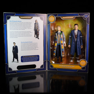 The Character Toys Exclusive 'The Regeneration' Box Set was announced in November 2022, shortly after the conclusion to Jodie Whitaker's 13th Doctor era came to a close. The set would feature a new version of the 13th Doctor in her 'multiple Doctors' outfit. She would be joined by the first figure of David Tennant's new 14th Doctor in his blue coat and brown suit.