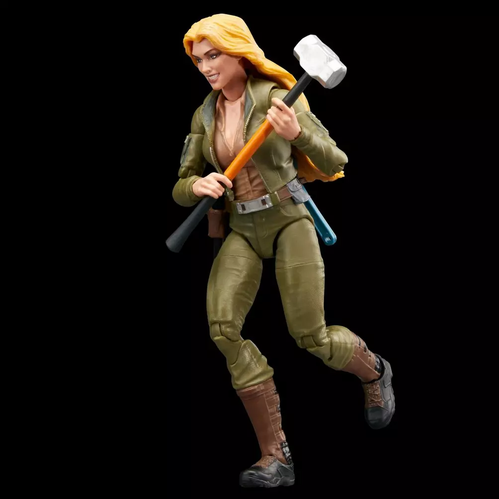 This Courtney “Cover Girl” Krieger figure contains 9 character-inspired accessory pieces including alternate head, alternate hair with baseball cap, 2 alternate hands, sledgehammer, wrench, weapon accessories and figure stand.
