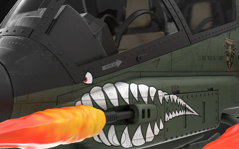 Cannon Details: The 25MM Dragonbreath Rotary Nose Cannon rotates and can pivot up and down; and twin X-551 Mini-Cannon details below the cockpit increase the XH-1’s powerful attack capabilities.