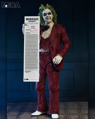 From Tim Burton's 2024 masterpiece sequel, Beetlejuice Beetlejuice, comes another Ultimate Beetlejuice, sporting his infamous red wedding tuxedo. Thirty-six years later, Beetlejuice is scheming once more to marry Lydia and finally escape the Afterlife! He shows up in his iconic look to disrupt Lydia’s own wedding and performs the classic 1968 song “MacArthur Park,” hoping to finally win over the love of his life and be locked in eternal matrimony. This 7-inch scale, fully articulated action figure includes interchangeable faceplates and hands, heart, bloody Baby Beetlejuice, and the marriage contract signed by Lydia. Comes in window-box packaging with opening front flap, perfect for your horror collection. Say his name three times and bring this amazing NECA Ultimate home, home, home!