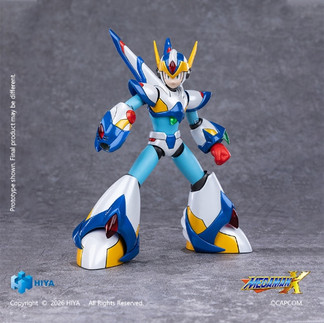 The next release in the Hiya Toys Mega Man universe is the Exquisite Basic X Falcon Armor. It will feature alternative face plates and helmet, as well as alternative hands, X-buster, and effect parts.