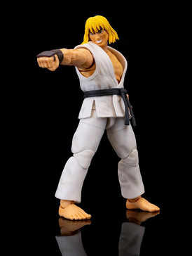 Get ready for the ultimate showdown in a world where street fighting is the main event! Revisit the world of your favorite characters from the Street Fighter II video game, now as 1:12 scale action figures by Jada Toys. The extreme fighter Ken Masters is back with his "Player 2" white gi! He comes equipped 2x interchangeable head sculpts, 2x sets of hands, 2x accessory pieces with a stand. This Ultra Street Fighter II Ken Player 2 Version 6-Inch Scale Action Figure - Entertainment Earth Exclusive comes in premium collector packaging with features inspired from the game. Be careful not to get caught on the opposite side of Ken's right hook!