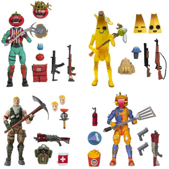 Includes: 4 x 15cm Articulated Figures—Recruit (Jonesy), Tomatohead, Peely, and Beef Boss, 4 x Harvesting Tools—Default Pickaxe, Axeroni, Patty Whacker, and Machete, 10 x Weapons - Dynamite, Infantry Rifle, Pump Shotgun, Clinger, Suppressed Submachine Gun, Hunting Rifle, Dual Pistols and 2 x Tactical Shotguns, 6 x Interchangeable Faces, 2 Interchangeable Heads, 4 x Back Bling and 4 x Consumables