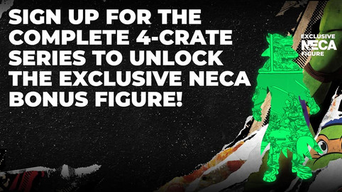 "Loot Crate and NECA have teamed up again for a brand new collection of limited edition TMNT collectibles, apparel and gear following the SOLD OUT first series. Don’t miss out on these new and exclusive Teenage Mutant Ninja Turtles crates! Order all 4 and get a totally tubular bonus figure! Supplies are limited."