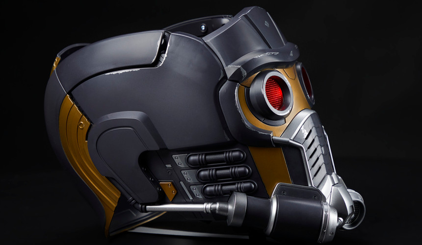 Peter Quill blasts into intergalactic action as the blaster-wielding, music-blasting hero, Star-Lord—complete with the helmet essential to his adventures across space. Equipped with thermal vision, HUD, and oxygen purification, the helmet has seen Peter through his most challenging of fights—including the Battle of Earth.
