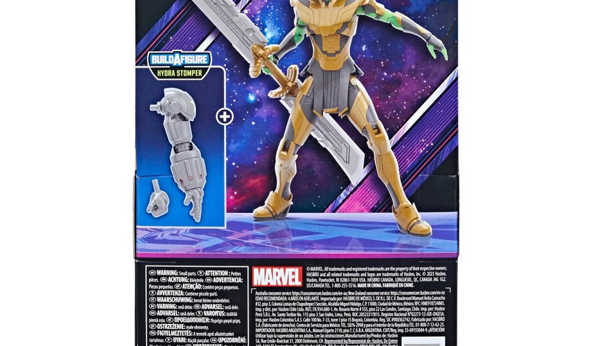 The wave includes Nick Fury and Talos from Secret Invasion. Agatha Harkness from Wandavision. Yelena and Kingpin from Hawkeye. Warrior Gamora and Goliath from What If? The Build-a-Figure is a What If? Hydra Stomper BAF complete with additional Steve Rogers head. Parts for the Hydra Stomper are spread across each of the figures, apart from Kingpin.