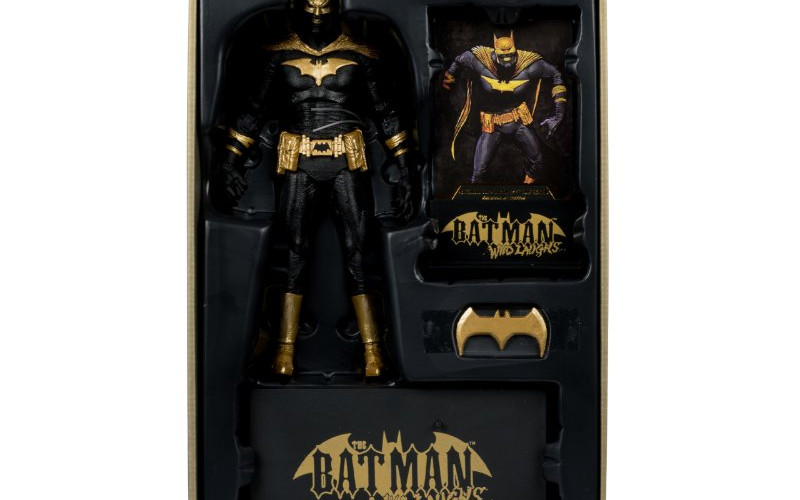 Accessories abound with a Batarang, figure base, authenticated art card, and an art card display base, inviting you to delve deeper into The Batman Who Laughs' dark realm.