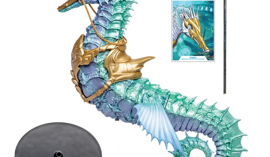 Rescued by Aquaman, Storm, a majestic albino Seadragon, is the Super Hero's trusted, loyal companion, bravely riding into battle with the Atlantean King.