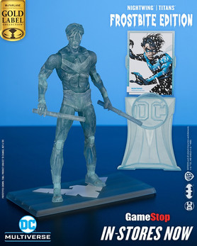 McFarlane have confirmed a variant of their Dick Grayson Nightwing is heading to Gamestop in the US. The Gold Label 'Frostbite' Edition has Nightwing cast in a blue frozen effect finish complete with night-sticks, alternative hands, display base, art card, and art-card display.