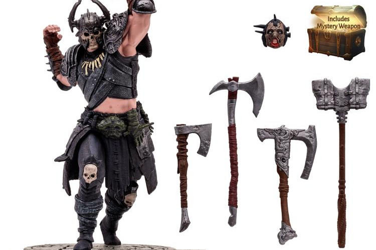 The McFarlane Diablo IV figures have finally been revealed. These are 6-inch scaled posed figures, similar in style to the Movie Maniacs line, with alternative parts & weapons as well as a diorama base and cardboard backdrop. Like the Movie Maniacs series, McFarlane are also packing a 'mystery' weapon with each figure.