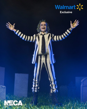 Celebrate Tim Burton’s original Beetlejuice film with this deluxe set from NECA! The classic 1988 horror-comedy stars Michael Keaton as an obnoxious “bio-exorcist,” who is hired to scare away the living but is secretly scheming his way back to life. This 2-piece set comes with a Beetlejuice action figure and a multi-page “Handbook for the Recently Deceased” replica journal. Wearing Beetlejuice’s iconic black and white striped suit, the highly detailed, 7-inch scale figure features 8 points of articulation and includes a snake and “Handbook for the Recently Deceased” accessories. The set comes packaged in a clear acetate box.