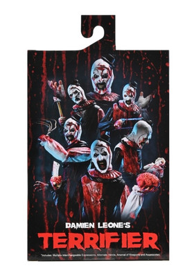 Relive the carnage of Damien Leone’s Terrifier with this Ultimate Art the Clown from NECA. This blood-soaked version features gruesome blood splatter deco on the sinister clown’s clothes and accessories. This 7-inch scale articulated action figure includes interchangeable expressions and hands, and a chilling collection of bloody weapons. Comes in collector-friendly window box packaging with opening front flap—perfect for your horror display.
