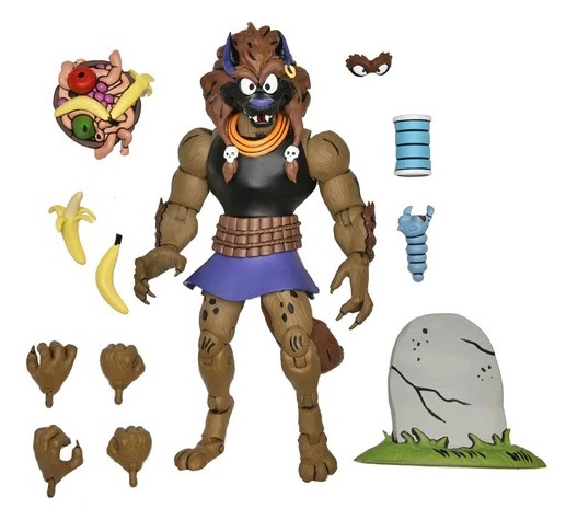 It’s an action figure first! This new action figure from NECA is straight from the pages of Eastman and Laird’s Teenage Mutant Ninja Turtles Adventures comic book series from Archie Comics! One of the strongest Mutanimals, Dreadmon gained his power of super speed from a mysterious talisman… which eventually also robbed him of his human form. This 7” scale figure is detailed as depicted in the comics, and includes interchangeable eyes, extra hands, bowl of guts, tombstone, and bananas. Comes in collector-friendly window box packaging featuring all new illustrations by comic book artists Ken Mitchroney and Gary Fields.
