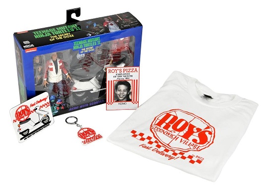 This summer, NECA serves up a totally bodacious offering in honor of Keno (played by Ernie Reyes Jr.) from Teenage Mutant Ninja Turtles 2: Secret of the Ooze! This Roy’s Pizza themed set is packed in a Roy’s Pizza box and includes a unisex t-shirt, magnet, keychain, postcard and action figure with scooter.