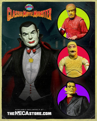 NECA has announced a NECA Store Exclusive release of four new Universal Monsters figures, repainted 'Classic Movie Monsters' versions of their 7 inch figures with decor paying homage to some of the original Universal Monsters action figures from 1986.