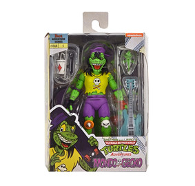 It’s the definitive Mondo Gecko for your TMNT collection! This action figure is straight from the pages of Eastman and Laird’s Teenage Mutant Ninja Turtles Adventures comic book series from Archie Comics! Mondo Gecko has left the music biz to join the Turtles in their pursuit to do good! This Mighty Mutanimal comes with a load of accessories, including extra hands, skateboard, guitar, pet gecko, soda cup, and microphone! Comes in collector-friendly window box packaging and features all-new illustrations by original TMNT comic book artist Ken Mitchroney.