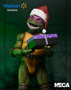 It's holiday hysteria as the Teenage Mutant Ninja Turtles’ Christmas vacation veers off course to Dimension X! Get in the X-mas spirit with the Heroes in a Half Shell as they pay homage to classic holiday specials in this action figure 4-pack from NECA! Standing in 7-inch scale, these festive figures are sure to bring the yuletide cheer... and gasp! They have hinged jaws to add an extra level of expression and enjoyment to your collection. Their very merry accessories include Santa hats, scarves with wire inserts for dynamic holiday party poses, and soft goods leg warmers to keep the cold-blooded reptiles warm during the holiday season. Plus, extra hands, presents, tangled Christmas lights, sewer lid, framed pizza, bell, and skateboard! Comes in collector-friendly VHS-inspired packaging.