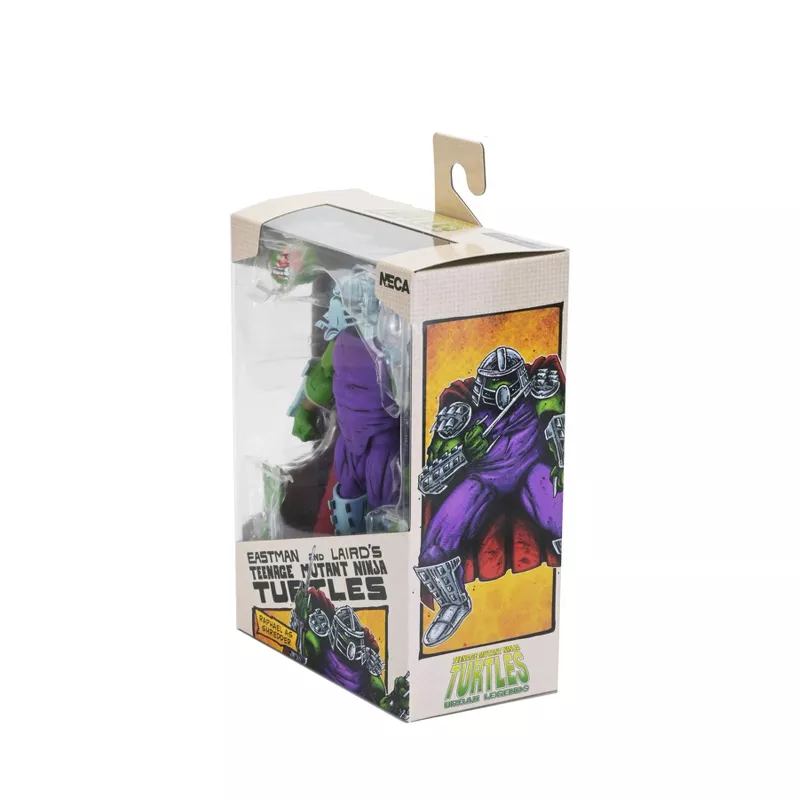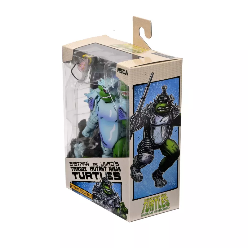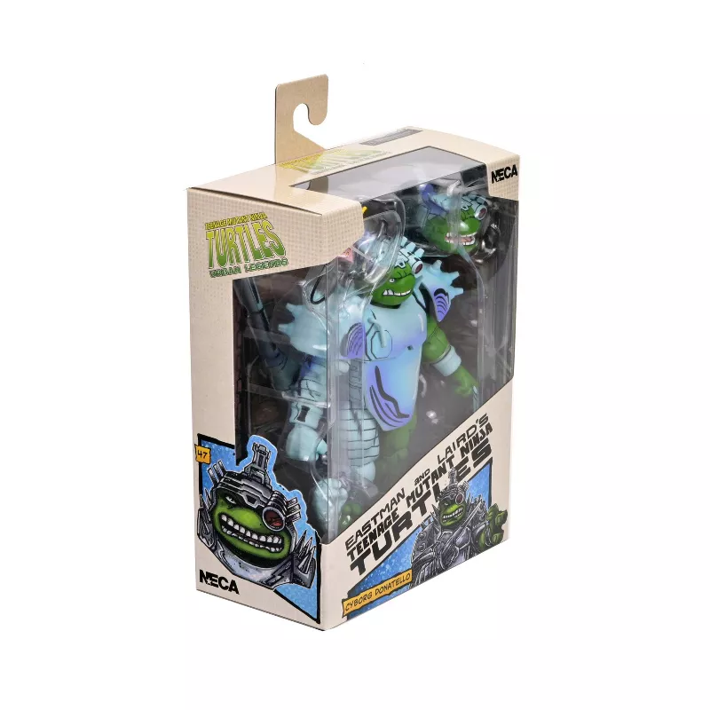 Based on the “Urban Legends” storyline in Eastman & Laird’s Teenage Mutant Ninja Turtles comic books from Mirage Studios! After a brutal cyborg attack nearly kills Donatello, he merges with a cybernetic host to save his life. Featuring an all-new sculpt, this 7-inch scale Cyborg Donatello action figure by NECA includes interchangeable heads, party hat, robo-knife hand, and robo-bo staff. Comes in collector-friendly window box packaging with artwork by Kevin Eastman.