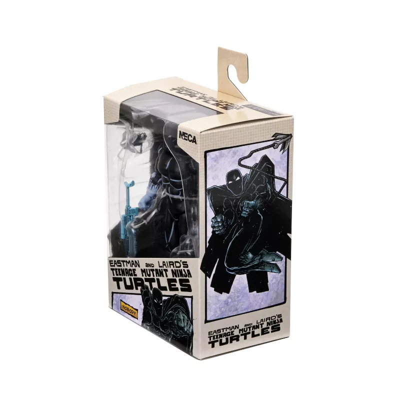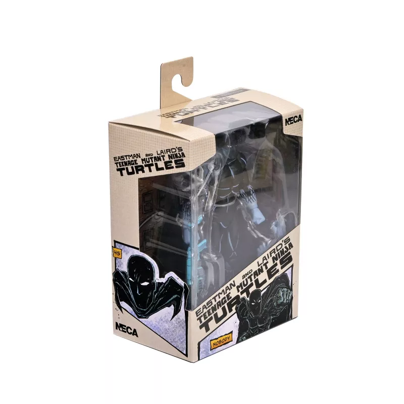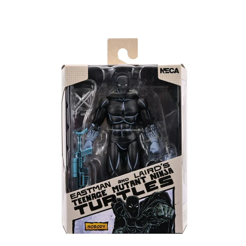 Based on his first appearance in Eastman & Laird’s original Teenage Mutant Ninja Turtles comics from Mirage Studios! Nobody, the secret identity of Officer Longer, is here as a 7-inch scale NECA action figure with an all-new sculpt! He features a soft goods cape, grappling hook with real string, and a “blaster.” Comes in collector-friendly packaging with original artwork by Kevin Eastman.