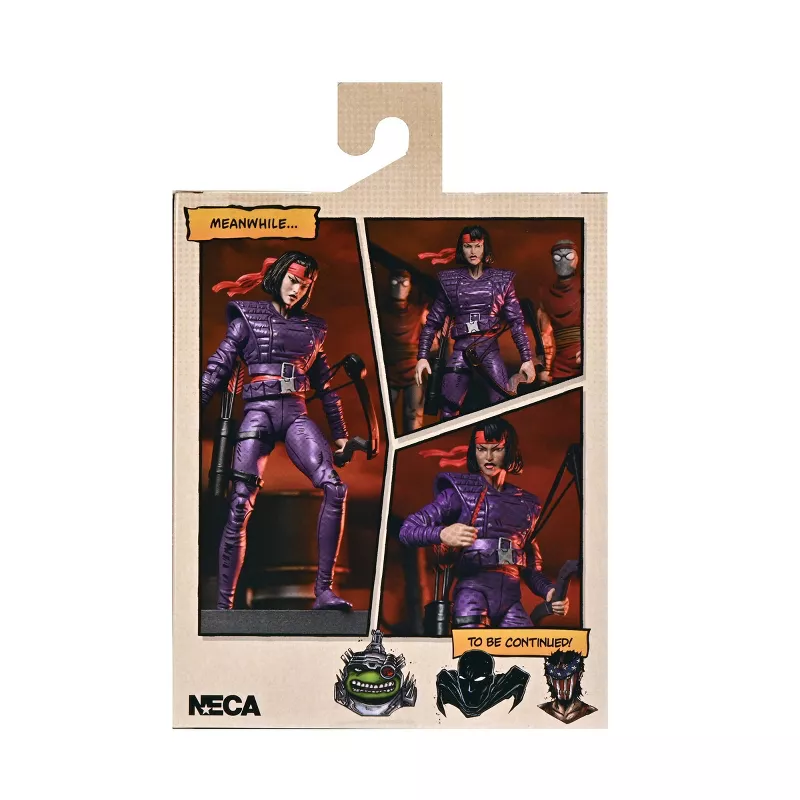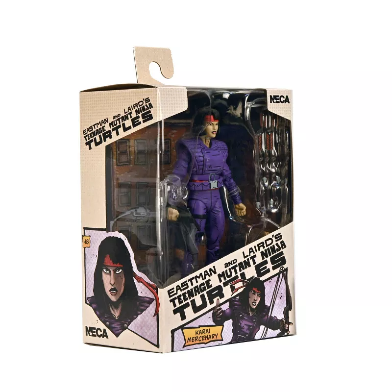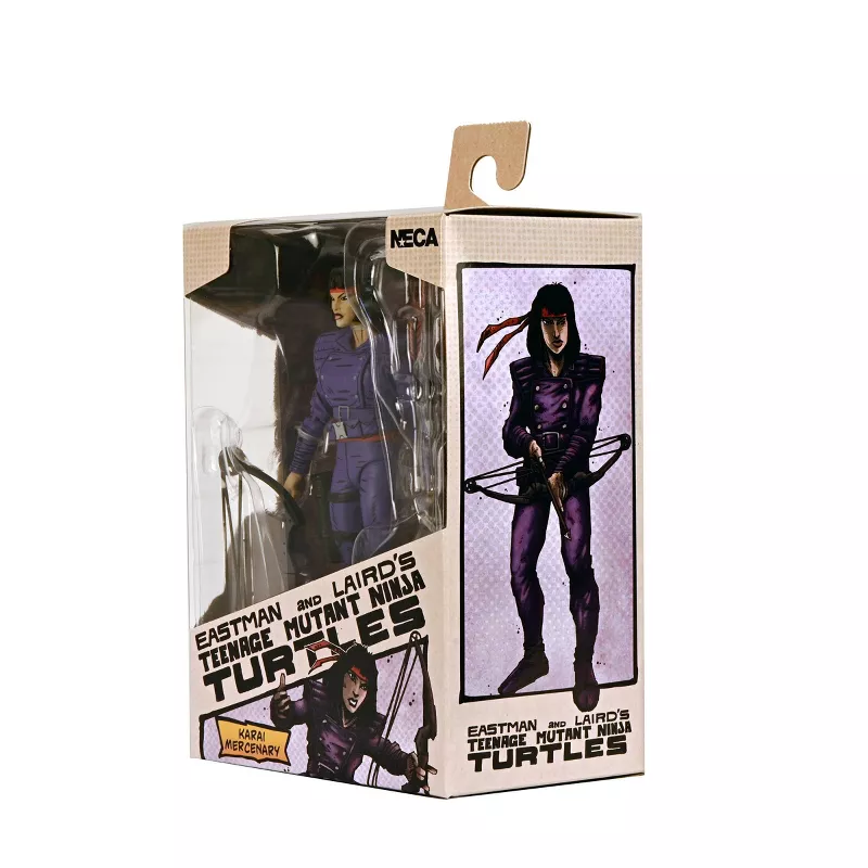 Based on her cover appearance in the “City at War” storyline in Eastman & Laird’s Teenage Mutant Ninja Turtles comic books from Mirage Studios! Karai, the new leader of the Foot Clan, is both a fearsome foe and uneasy ally to the Turtles. Featuring an authentic, stylized comic book deco, this Karai Mercenary action figure is ready to join your TMNT collection. The 7-inch scale NECA figure includes interchangeable hands, bow and arrow, and quiver. Comes in collector-friendly window box packaging with artwork by Kevin Eastman.