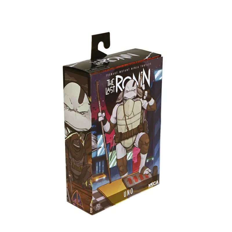 From the pages of the Teenage Mutant Ninja Turtles comic book series, The Last Ronin! NECA is proud to present Uno for the first time in adult action figure form. A second-generation turtle, Uno, whose name means “one” in Spanish, is ready to train with his sensei Casey Marie as he prepares to protect the streets of NYC. This highly articulated 7-inch scale Ultimate action figure features an all-new sculpt and stylized, detailed deco. He includes interchangeable heads and hands and a removable fabric belt, poncho, and hood. Plus, handheld game, kunai, and the turtles’ signature weapons. Comes in collector-friendly window box packing with opening front flap featuring original artwork by The Last Ronin artist Ben Bishop.
