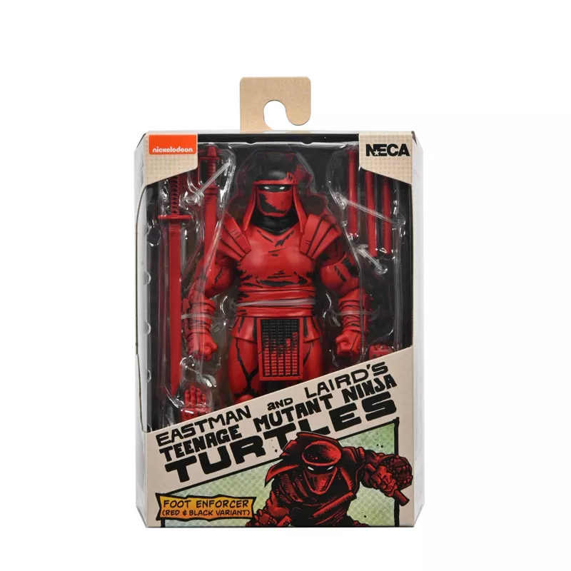 Based on the original Eastman & Laird Teenage Mutant Ninja Turtles comic books from Mirage Studios! The most skilled of the Foot Clan’s ninjas, the Enforcers are mysterious and menacing. These well-armed warriors form Shredder’s inner guard and carry out his most lethal orders. This Foot Enforcer action figure stands approximately 7" tall and features an exciting new red and black colorway. It includes a three-section staff, ninjato, butterfly sword, naginata and four sets of interchangeable hands. This NECA collectible comes in special comic-book themed window box packaging illustrated by Kevin Eastman and is a great companion piece to our Red and Black Foot Assassin! (Not included.)