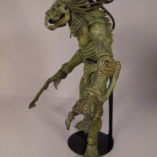 Sammael stands almost 9 inch tall and is a hefty weight in hand. The sculpt is amazing with a mountain of detail from head to toe. Starting at the head, the sculpt captures Sammaels's gaping jaws and his 4 eye sockets. It is worth mentioning here that I believed one of my eyes was missing on the figure, but research has shown that this intentional to mirror the film. From the head a series of head tails snake away and flow over his shoulders. These are cast in a flexible plastic so that they move easily with the head.