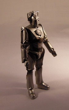 Where the figure shows his age is the articulation. The arms are a simple rotating shoulder, and the elbow a pegged 90 degree joint. This leaves the Cyberman with very limited movement and there is no chance of a double handed weapon pose and it isn't too keen on holding the provided gun in one hand, there is a knack to getting it posed. Like the arms the legs are also a rotating hip, with a pegged knee. This allows the figure to sit if you wish. The only other movement is in the head which rotates to either side on a peg, but with no up and down movement.