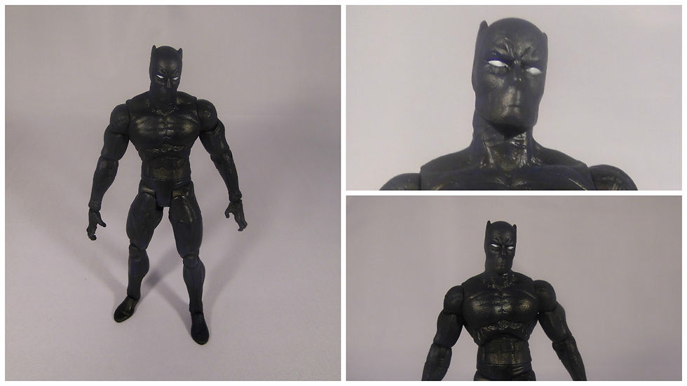 Although you would assume the figure is fully black, Diamond have applied a very dark blue paint effect to the figure. This at least breaks up the colour and creates some variation, but the blue doesn't look to be strategically placed to bring out certain detail. It also seems to be over painted on the groin piece which in some lights then looks a different colour to the rest of the body parts around it.