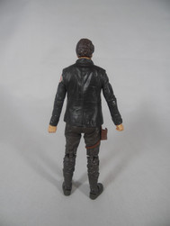 Poe's outfit is very "Han Solo" starting with a collarless shirt which is cast in an off white colour and just has the neck painted in skin tone, and sadly a skin tone that is a lot lighter than the head skin tone. Over this we have a jacket, cast as a separate rubberised piece. Again the jacket is cast in the dark colour - and I still can't decide if this is black, brown or blue. There are some silver paint apps added for buttons - and that is it. The sleeve colour is a good match to the coat piece and on the right sleeve we have a Rebel/Resistance winged decal. This is nicely distressed so it doesn't appear as though Poe is wearing a brand new shiny coat off the rack.