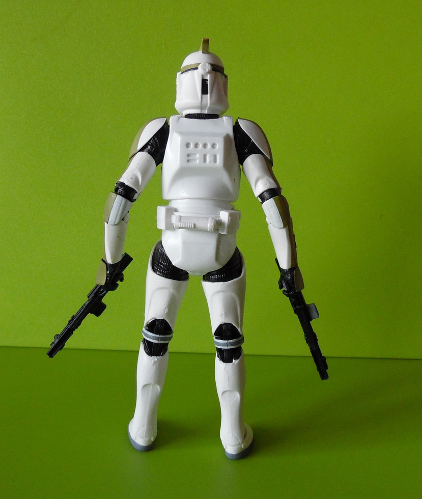Looking solely at the differences on this release the base white plastic also seems to have changed colour, and the Sarge is signifantly different in shade to the trooper. Paint job is OK, but not great - on mine I had splashes of the green across the chest that shouldn't have been there. The figure still suffers too with messy joints - both in that they are a cast in black and painted a different shade of white and then the paint is easily smeared. He comes with the same guns as last time, but for my images I gave posed him with two of the blasters to give him a bit of character.