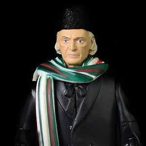Out of the box and the Doctor figure is based on the earlier William Hartnell Doctor with coat and scarf, but with an updated Bradley head sculpt. The likeness is good while the aesthetics of the line remain in place so he doesn’t look out of place with any other figure from the near 18-year history of the line. Paint apps are basic with much of the figure parts cast in their base colour. There are some crisp details added in the coloured stripes of the scarf, and in the neat checked pattern of the trousers.