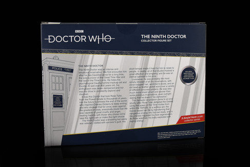 The 9th Doctor Collector Set is part of the Autumn 2022 Doctor Who Collectors range sold through B&M stores in the UK. Like most of the B&M 3-packs that have gone before, it includes a majority of figures (or parts of figures) that have previously been released but tweaked or repainted to create new versions. The packaging remains consistent with the other three packs and now gains some background information on the back of the packaging that talks through the 9th Doctor’s era and appearances.