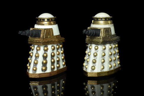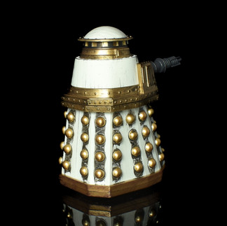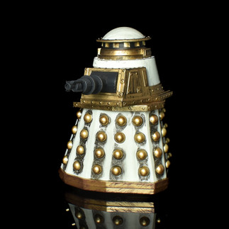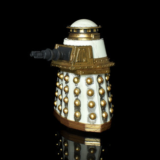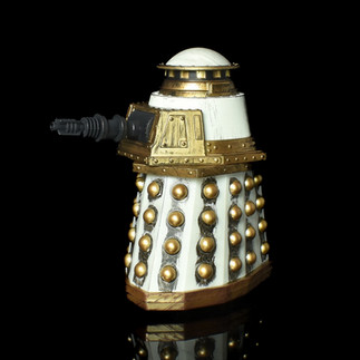 Looking at the Imperial Dalek Drone first, and this is built on the usual and long-running Classic Dalek body, cast in a cream white finish. Gold is added to the hemispheres on the base, around the central slats, and in the mesh of the neck. We also have gold cast gun and manipulator arms, gold ‘headlights’ on the dome, and a gold finish to both the eye piece and central rings of the eyestalk - the central shaft of which is left white.