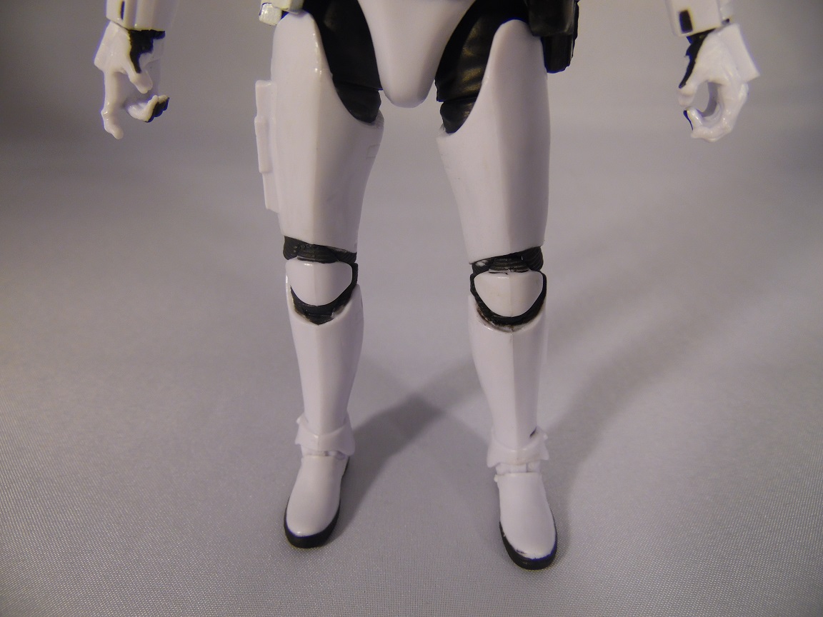 The white areas of the figure are cast in a shiny hard plastic and therefore reflect light pretty well and look the part vs the on screen version. However, the issue that plagued the Storm Troopers and Clone Troopers from 2014 is still evident on this figure where any added parts like the belt and knee pads are black plastic painted white and these look very yellow and off colour vs the rest of the armour. The paint, for what it is in these areas is neat although I have got some very minor bleeds on my Trooper's knees.