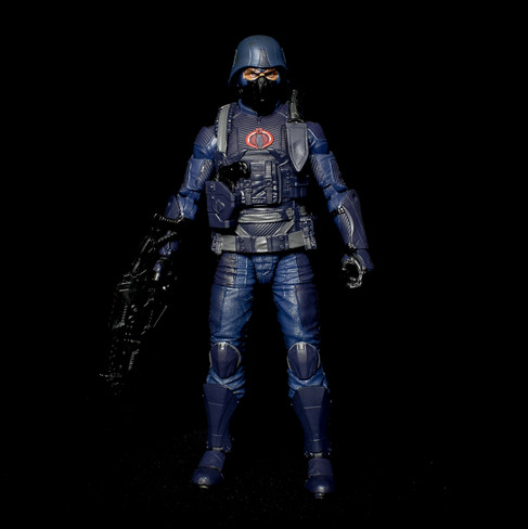 The Cobra Infantry is essentially the same figure as the Exclusive Cobra Trooper released in 2020 and is cast predominantly in a blue plastic with the inset textured panels of the uniform picked out in a darker blue. A red Cobra symbol is actually part of the sculpt and is neatly painted. Other detail which could have been painted, such as the straps on the combat vest and the boots, are left in the base colour.