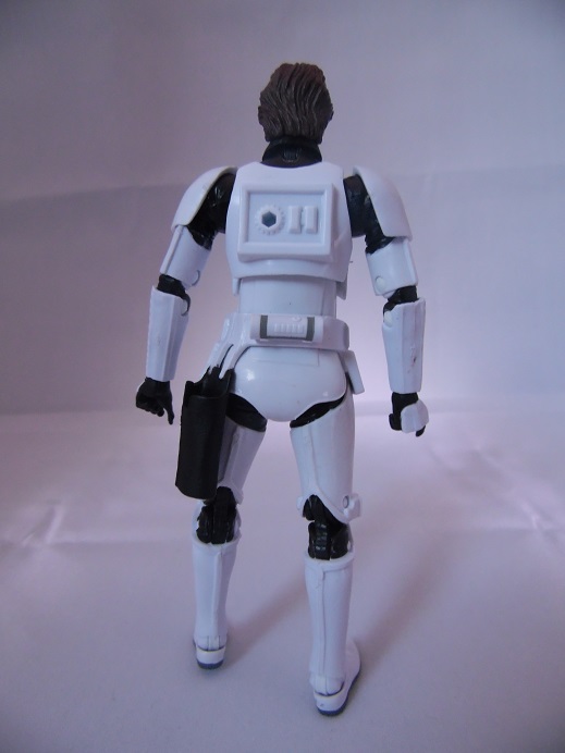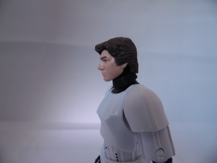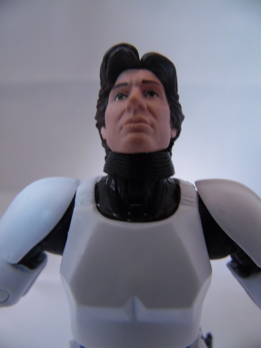 The sculpt of Han's head is identical to the standard Han release and is a decent enough likeness. It also seems to be much better painted to those we saw in wave 3, so maybe Hasbro have addresses the sloppy paint issues that plagued them last year. Moving to the neck and there is a separate neck piece slotted over the existing black neck. This is different to that on the normal StormTrooper and ensures Han looks realistic when posed without the helmet. This neck piece does still allow for some general movement in the head so you can get Han looking up,down and to the sides.