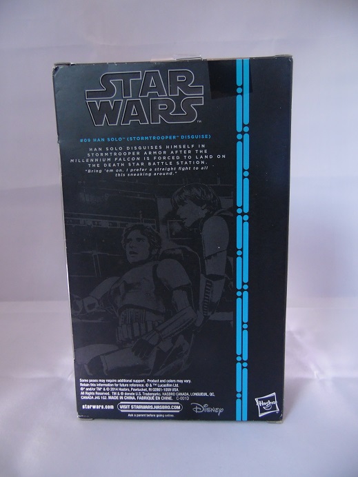Han arrives in the usual Black Series, blue trimmed box. He is numbered #09 which a continuation of the reset numbering system that Hasbro applied when they launched the Blue trim in wave 5. On the rear of the box you will find the usual Black Series art-work as well as a bit of blurb about the figures role in the film.