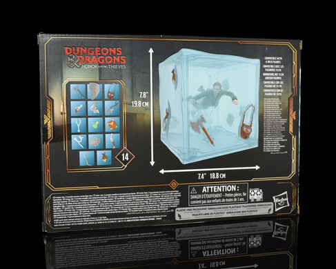 The cube replicates its role in the finale of Honor Among Thieves and its role in the games being held at Neverwinter. It measures a touch under 7.5 inches on each side and is cast in a textured translucent blue plastic that allows the interior contents to be seen. This is actually too big vs the cube we see in Honor Among Thieves which is no taller than the main character.