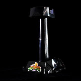 The beauty of the piece is the display option, and to support this you receive a four-piece display stand to assemble. While there are no instructions, the pieces only fit together one way to create the piece which is a glossy black plastic in its finish and adorned on the front with a foil classic 1993 Power Rangers logo sticker. Instead of this sticker, which won't be everyone's cup of tea, it might have been nice for an option to curate the piece with a nameplate instead as we might see on very high-end prop replicas.